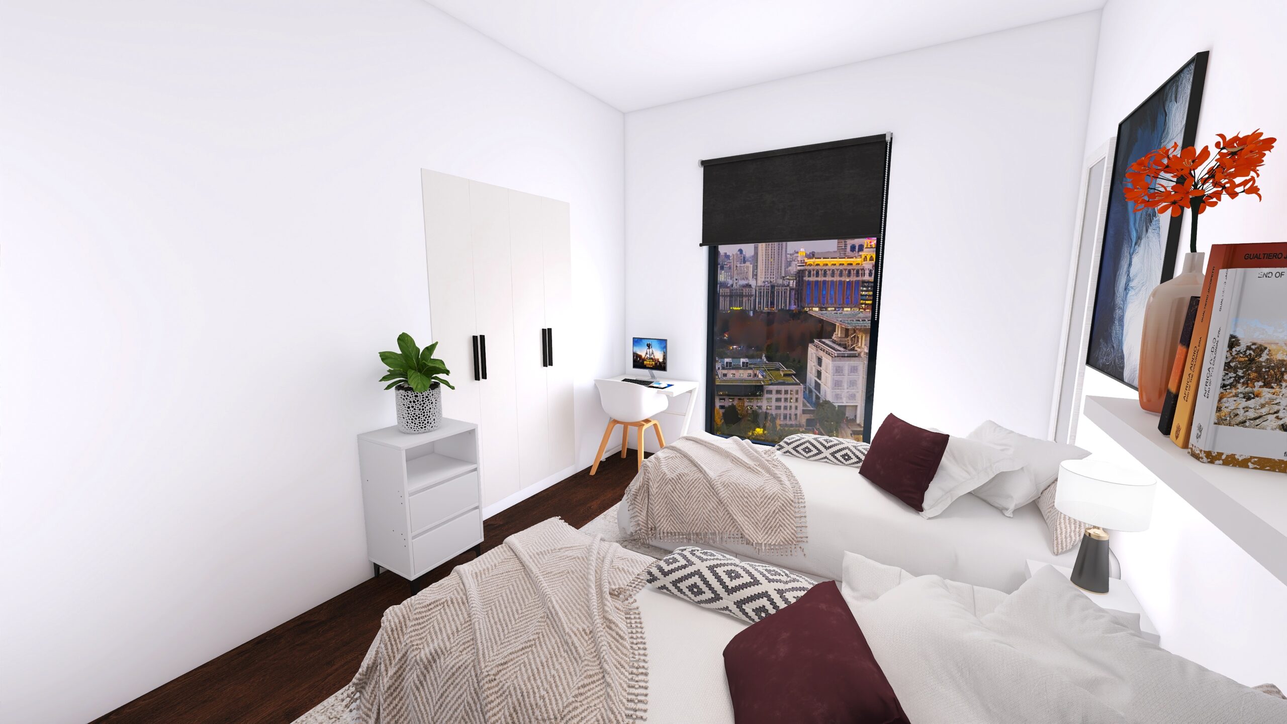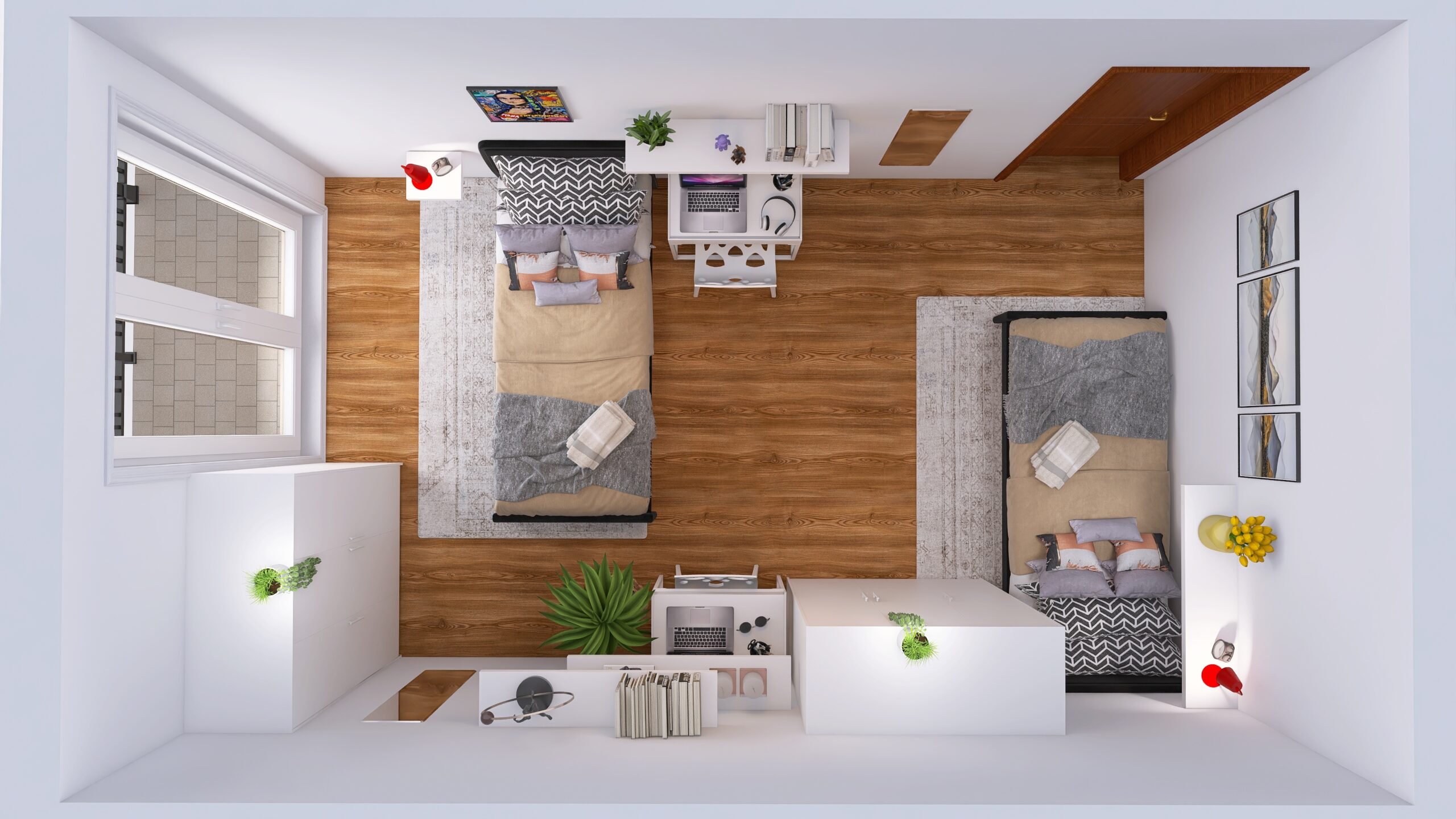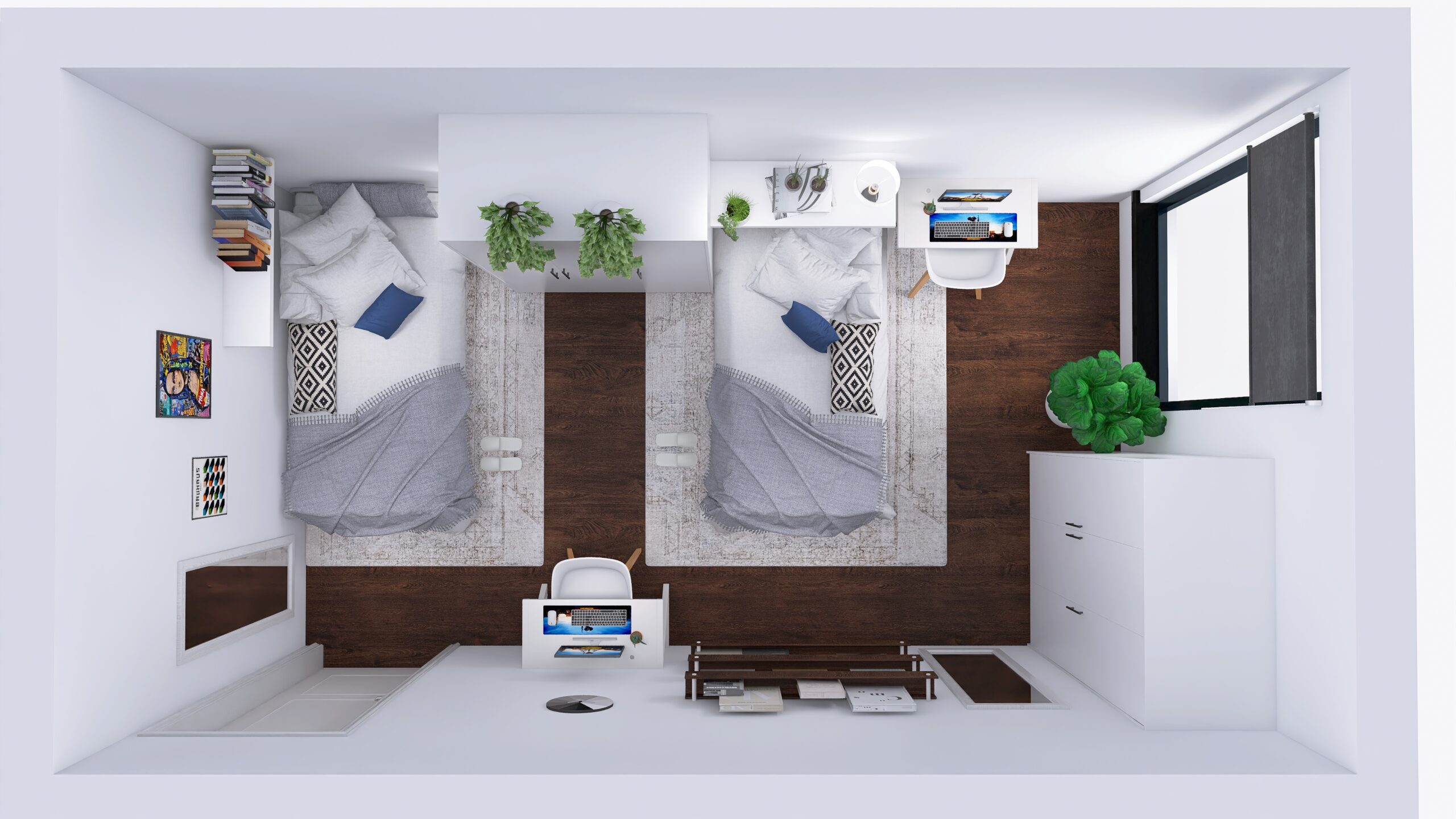 Moderna e comoda, dotata di due letti singoli, doppia scrivania e arredi nuovi. Pensata per una convivenza funzionale.