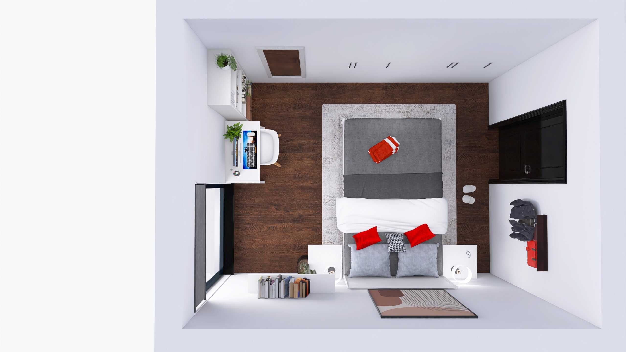 Ampia, luminosa e dal design elegante. Arredata con letto matrimoniale, armadio e cabina armadio, è una stanza estremamente versatile: ideale come singola super confortevole o come doppia funzionale, grazie agli spazi ben organizzati e i 2 letti singoli. Perfetta per chi ama avere tutto in ordine.