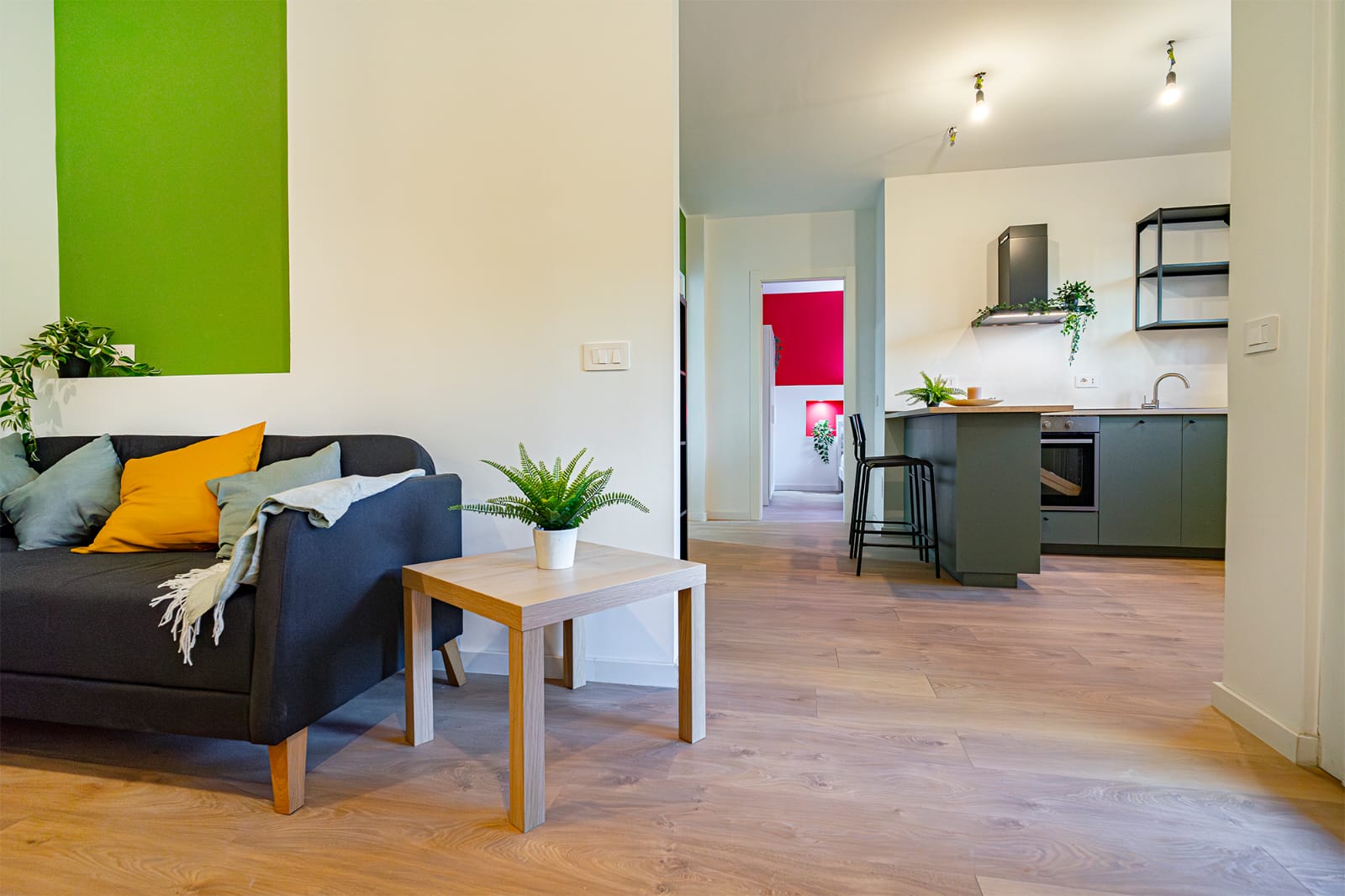 L’intervento ha previsto il frazionamento di un ampio trilocale in due bilocali indipendenti, progettati per rispondere alla forte domanda abitativa della zona, caratterizzata da giovani professionisti, studenti e lavoratori fuori sede.